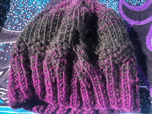 Purple and black beanie